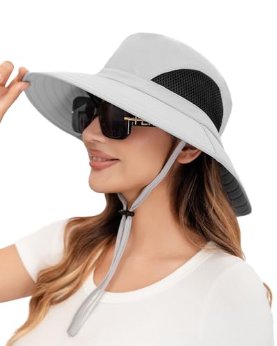 Huakunda Solhatt herr UPF 50 UV skydd fiskarhatt med hakband vikbar safarihatt bred brätte buskhatt för utomhusbruk resor, LJUSGRÅ, one size