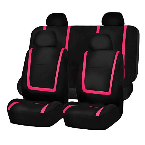FH Group Bilsätesöverdrag rosa universell passform unik platt duk passar de flesta bilar, SUV:er och lastbilar (med 4 avtagbara nackstöd och solid bänk) FB032PINK114