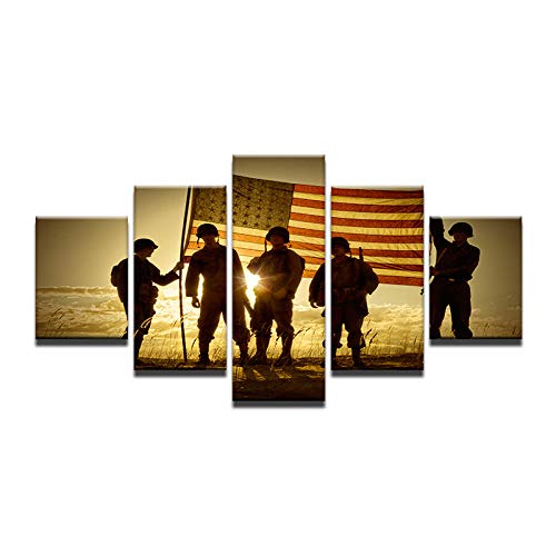 DRNXP 5 paneler vintage foto amerikansk soldat flagga tryckt affisch solnedgång landskap duk målning vardagsrum hem väggkonst bild @ w