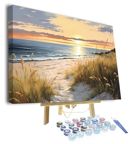 TISHIRON Målning för hand måla efter siffror vuxna målningsset för vuxna med penslar solnedgång vid havet måla efter siffror på duk akryl pigment hantverk 40 x 50 cm med ram
