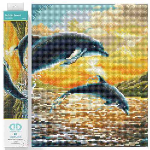 DIAMOND DOTZ Diamond Dotz Squares delfin solnedgång ca 31 5 x 42 cm stor diamantmålning, målning med diamanter, gnistrande bild för egen design, för barn och vuxna, färgglad