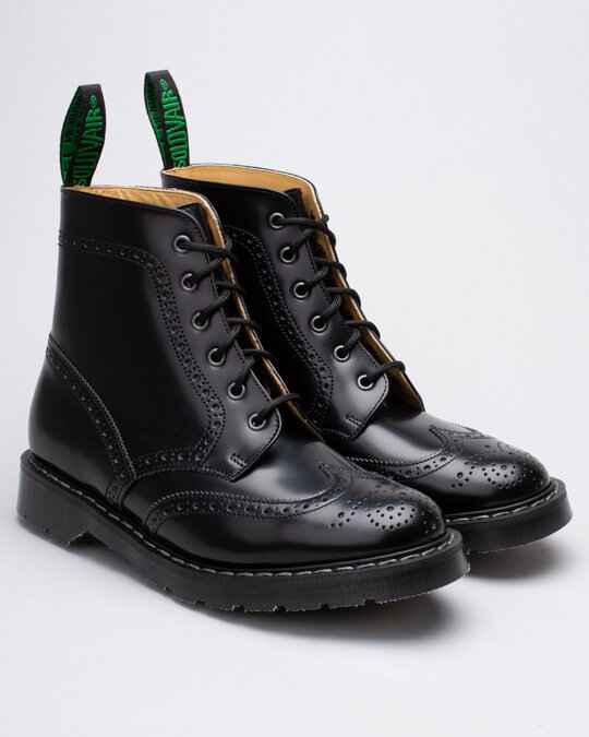 Solovair, 6 Eye Derby Brogue Boot-Black Hi-Shine