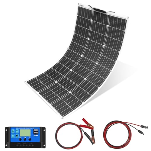 100W 12V Solpanelssats Flexibel Monokristallin Solpanel med 10A Solladdningsregulator och 3 m solkabel för husbil husvagn off-grid husbilsbatteri laddning