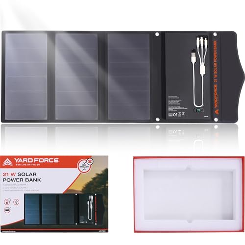 Yard Force 21 W bärbar solladdare med 2 USB-portar, 13 000 mAh integrerat batteri, solpanel digital batteridisplay – för laddning av USB-enheter iPhone, Android, MacBook, LX PB21