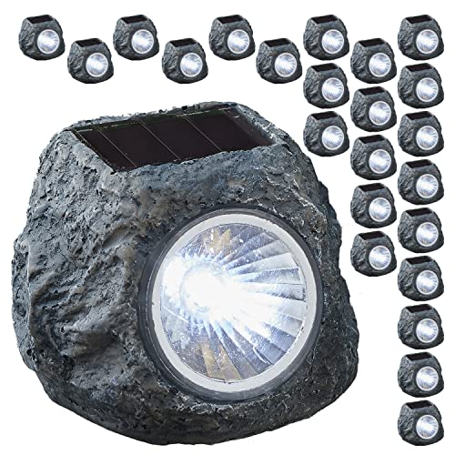 Cepewa Solcell set om 24 stenutseende | svart 6,5 x 6 x 5 cm polyresin | batteridriven solpanel | trädgårdsljus gångljus (1 x set om 24 solcell sten)