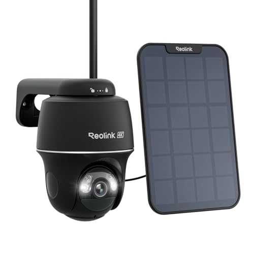 Reolink 4K PTZ Övervakningskamera Utomhusbatteri, Argus PT Ultra + Solpanel, 2,4&5GHz WiFi, Solkamera Utomhus med 8MP UHD Färg Nattseende, AI-detektion, Ingen Månadsavgift