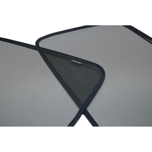 Solskydd för de bakre fönstren med den senaste generationens bakruta passar perfekt i polymerbelagt specialtyg. Mörk design bak med 15% ljusgenomsläpplighet. Sekundsnabb montering och borttagning