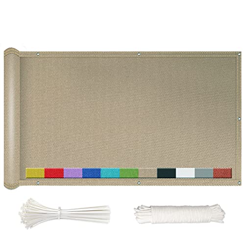 NKADNB Balkonginsynsskydd, balkongskydd, vindskydd, solskydd, för balkong och trädgård, utan borrning, 110 x 600 cm, sandfärgat