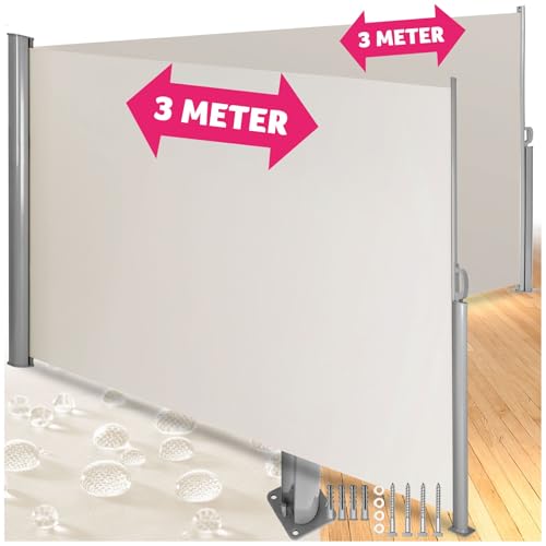 tectake® Sidomarkis Dubbel, Insynsskydd Balkong eller Trädgård, Enkel Hantering, Automatisk Upprullningsmekanism, Insynsskydd, Vindskydd och Solskydd 200 x 600 cm - Beige