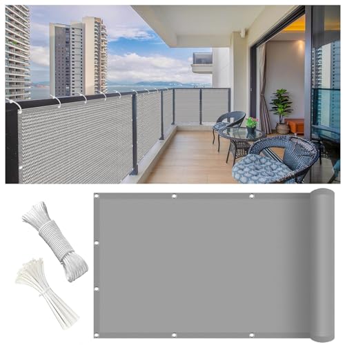 Insynsskydd för Balkong 80 x 950 cm Ogenomskinlig, Väderbeständigt, Vindtätt, Solskydd, Balkongspänning Balkong Solskydd Nättyg Med Hål Och Buntband för Balkongstaket, Grå