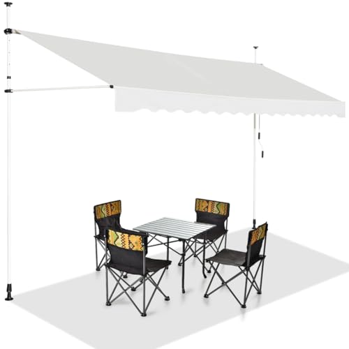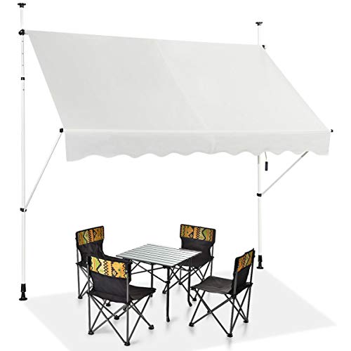 COSTWAY Klämmarkis, 400 cm bred, balkongmarkis utan borrning, UV-beständig, höjdjusterbar, vattenavvisande, markis med handvev, solmarkis, solskydd för balkong, beige