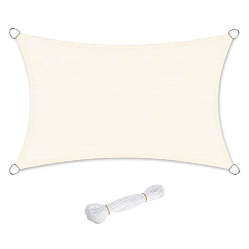 SONGMICS Solsegel 2,5 x 5 m, solskydd av slitstark HDPE-plast, väderbeständigt UV-skydd, ventilerande, trädgård, balkong, terrass, camping, rektangulär, 2 m rep beige vit, GSS25IV