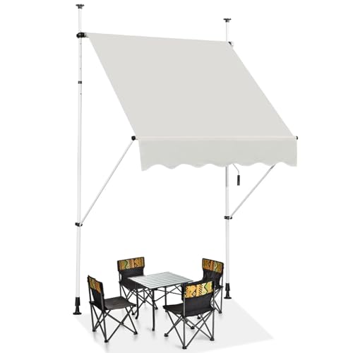 COSTWAY Klämmarkis, 150 cm bred, balkongmarkis utan borrning, UV-beständig, höjdjusterbar, vattenavvisande, markis med handvev, solmarkis, solskydd för balkong, beige