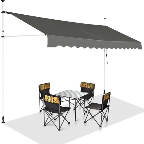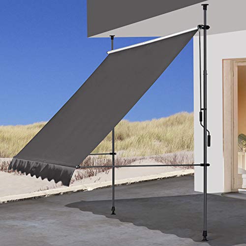 Songmics Klämmarkis, 250 x 130 cm, balkongmarkis, höjdjusterbar, med handvev, solskydd, för balkong, terrass, trädgård, antracit GSA253G02