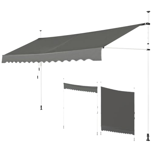 Songmics Klämmarkis, 300 x 130 cm, balkongmarkis, höjdjusterbar, med handvev, solskydd, för balkong, terrass, trädgård, antracit GSA313G02