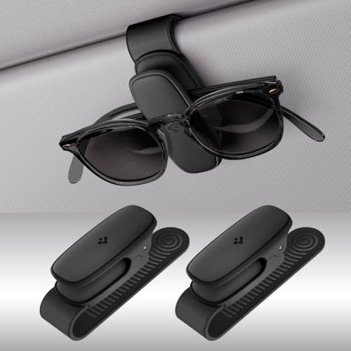 Spigen Solglasögonhållare med silikonklämma för bilens solskydd, klämma för glasögon, solglasögon, biljetter och kort, tillbehör för bilens solskydd, 2-pack (svart)