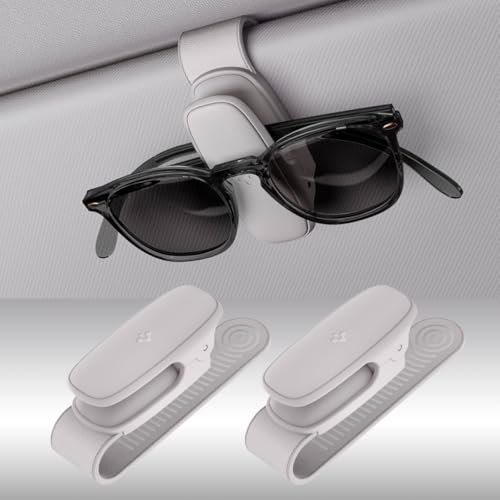 Spigen Solglasögonhållare med silikonklämma för bilens solskydd, klämma för glasögon, solglasögon, biljetter och kort, tillbehör för bilens solskydd, 2-pack (grå)
