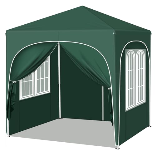 Woltu Vikbar paviljong 2 x 2 m med 4 avtagbara väggar – UPF 50 solskydd, vindtät metallram, justerbar höjd i 3 steg, bärbar marknadsparaply för trädgård, camping, strand – grön