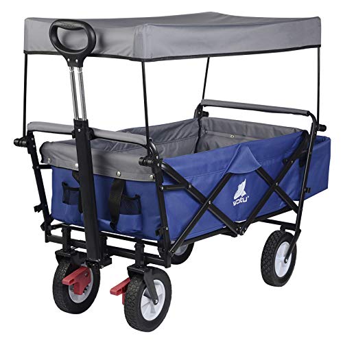 Woltu vikbar, handvagn, trädgårdsvagn med tak, rullar, broms, strandvagn med solskydd, för trädgård camping barn, kan belastas 80 kg, blå