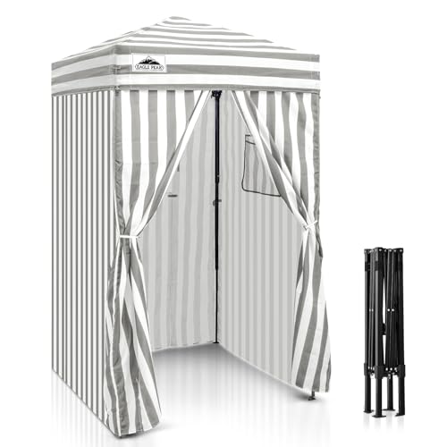 EAGLE PEAK Flex ultrakompakt 4 x 4 popup-tak, solskydd, omklädningsrum, bärbar integritet baldakin cabana för pool, modefotograferingar eller camping, grå/vit