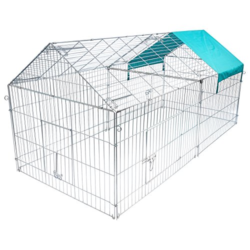 EUGAD Utomhuskapsling kanin, hage för smådjur, inhägnad för smådjur med tak och solskydd, kaninbur XXL, utvändigt inhägnad, valppip, dörr med lås, trådavstånd 4 cm, 220 × 103 × 103 cm