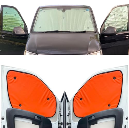 Solskydd för bil vindruta vindskydd interiör kompatibel med Peugeot Partner (2007–2018) (komplett set + öppningsbar baklucka takfönster) orange Tango-rygg, vändbar och termisk