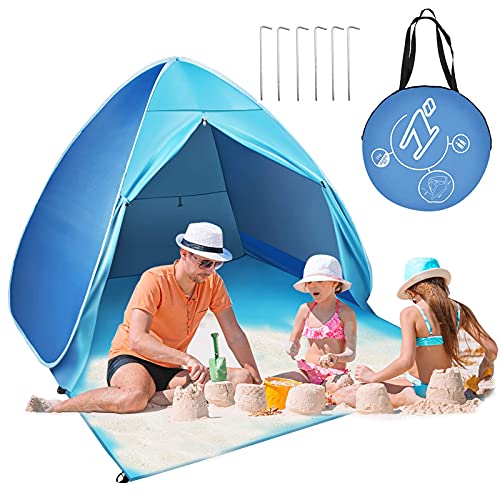 HACRAHO Pop up-strand-soltält, 1-pack, hopfällbart anti-UV, mini, automatiskt, pop-up tält med 4 vattenförvaringsväska, omedelbart solskydd, baldakin med fasta spikar för utomhusbruk, camping,