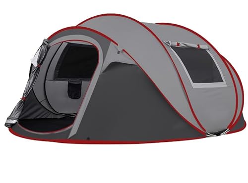 NIUEVLRS Omedelbar pop up campingtält, 5-6 personers tält, 3 sekunders automatisk installation, vattentätt solskydd för familjen, lätt bärbart kupoltält (mörkröd)