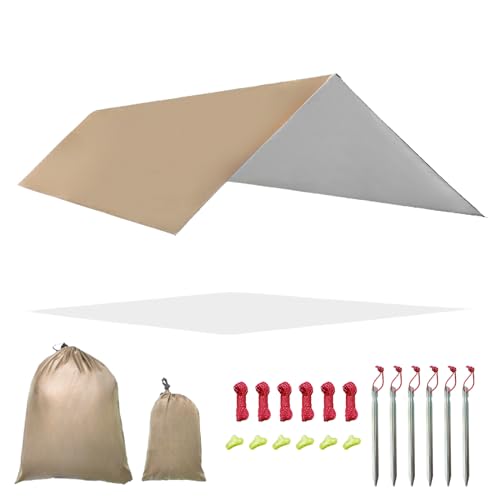 Fay Bless regn fluga camping presenning vattentät beständig solskydd lätt hängmatta tält presenning med multifunktionella campingtillbehör (beige, 3 × 3 m)