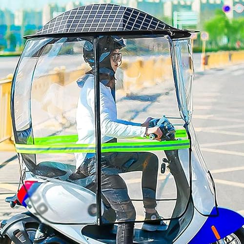 Universal Helt Sluten Motorcykel Solskydd Skärm Tält Paraply Vindruta Baldakin Motorcykel Tak Motorcykel Mobility Scooter Solskydd Regnskydd, Silver,B