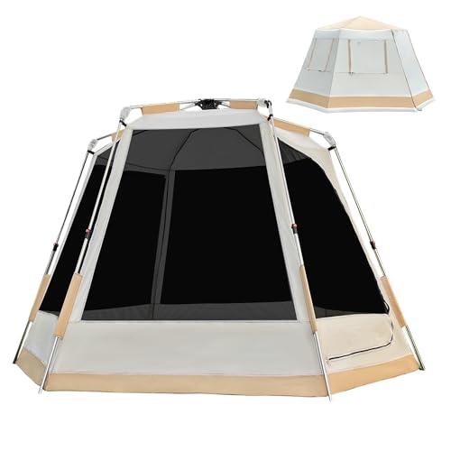 EULANT Vattentätt familjetält (2-4 personer) med automatiskt snabb-system, dubbelt lager sexkantigt campingtält solskydd tält, Blackout ramtält, 3,3 x 3,3 x 2 m