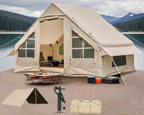 DanCoom Uppblåsbart campingtält, stugtält, 2-4 personer, Glamping-tält, solskydd, enkel montering, vattentätt Oxford-tält, uppblåsbart hustält