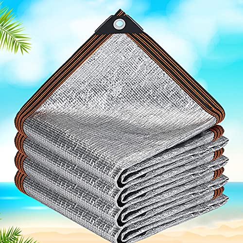 99 % reflekterande aluminium skuggduk, slitstark skuggduk för växter/bil - värmeskydd, HDPE, solskyddande nät solskydd tyg skugga presenning med öljetter (Storlek: 4,1 × 8 m)