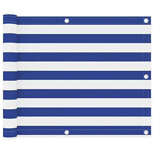 Homgoday Balkongskärm vit och blå 75 x 500 cm Oxford-tyg, skyddande skärm, vindruta för vind och solskydd för utomhusliv, insynsskydd