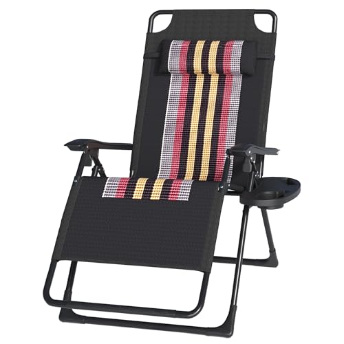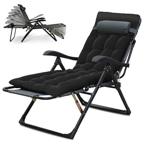 T-ZBDZ Trädgård solstol, hopfällbar lätt, solstol, väderbeständig upp till 150 kg, vikbar balkong, extra bred, solstol, avslappningsstol, trädgårdsstol, relaxfåtölj för utomhus, strand, camping, svart