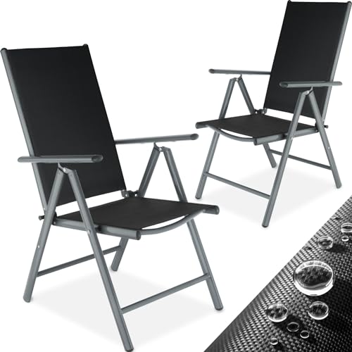 tectake® Uppsättning av 2 hopfällbara trädgårdsstolar i aluminium, justerbart ryggstöd, solstol för balkong & trädgård, lättskötta & tvättbara, stabil konstruktion - Antracit/Svart