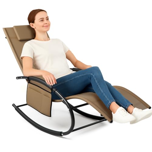 BAKAJI Trädgårdsgungstol, solstol med noll tyngdkraftsbeläggning med huvudstöd, fåtölj för utomhus- och inomhusbruk, balkong, uteplats, terrass (brun)