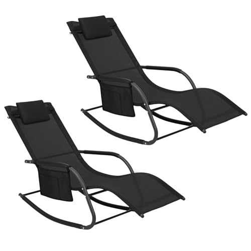 WOLTU Solstol, solstol, väderbeständig, set om 2, trädgårdsstol, svängstol, utomhus, relaxfåtölj, trädgård upp till 150 kg, relaxstol med avtagbart nackstöd, för trädgård och balkong, svart, LS005sz-2