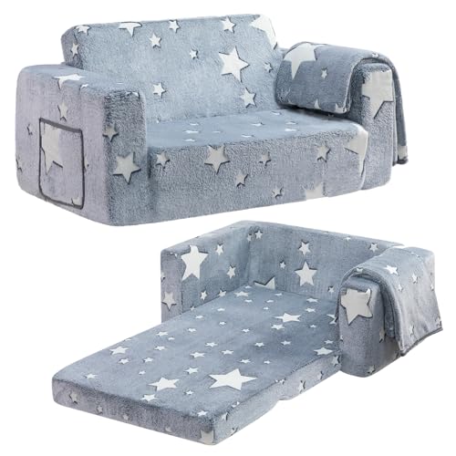 MeMoreCool Bäddsoffa för barn, modulär soffa för småbarn, lyser i mörkret stjärnor barnstol solstol hopvikbar baby mini soffa sovrumsmöbler för lekrum, grå stjärna