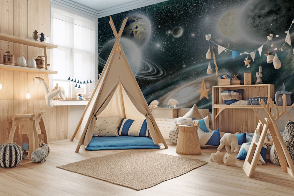Fototapet -Solsystem och spiralgalax - Barnrum - Scandiwall - Solsystemet