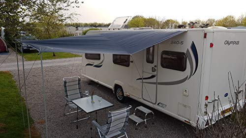Unikka Comfort Husvagn solsegel husvagn presenning 4 x 2,4 m soltak inkl. stativ UV 50 skydd vattentätt 5 000 mm