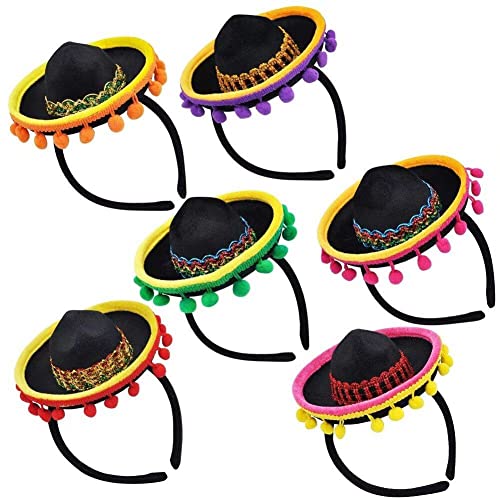 Mini Mexikansk Sombrero-hatt, Cinco De Mayo Fiesta-pannband, 6 stycken, söt mexikansk Fiesta-hatt, pannband, festivalhuvudbonad för Fiesta-karneval