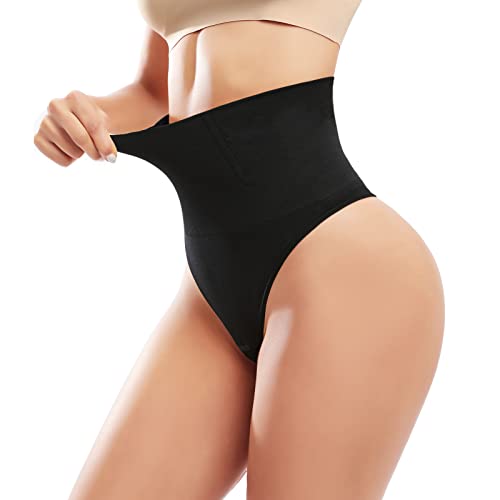 Xnova String-formande stringtrosor för kvinnor trosor med hög midja stringtrosor med hög midja stringtrosor mage platt mage lyfter glitter sömlösa osynliga trosor kroppsformare (Svart, M)