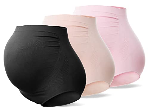 SUNNYBUY Kvinnor moderskap hög midja underkläder graviditet sömlösa mjuka hipster trosor över bula, Blackskinpink 3-pk, XXL