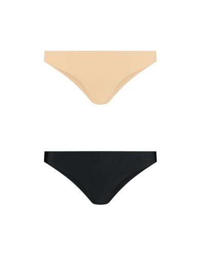 Bye Bra Osynliga brasilianska trosor, sömlösa underkläder med låg midja, släta och bekväma trosor utan sömnad, 2-pack: Beige, svart, S-XXL, Beige ochsvart, L