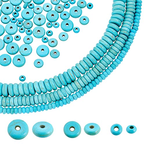 PandaHall 440 st blå turkosa stenpärlor heishi ädelsten pärlor platta runda skivor rondeller distanspärlor för heishi lerpärlor sommar Hawaii stapelbart halsband armband smyckestillverkning 4/6/8 mm
