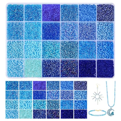 PH PandaHall 24 000 st 2 mm blå glasfröpärlor 24 färger 12/0 midjepärla mini vänskapsarmband pärla små hantverkspärlor för smyckestillverkning sommar stranddekor gör-det-själv armband halsband