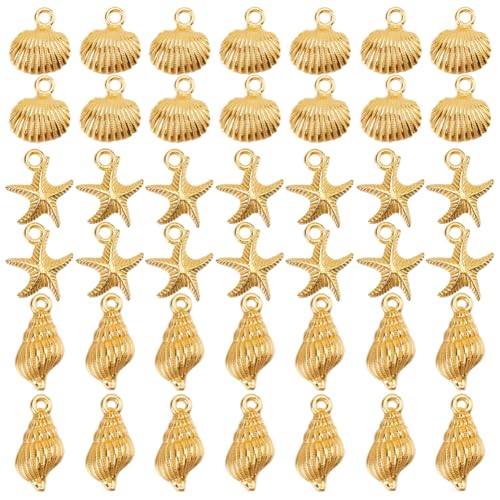SUNNYCLUE 1 låda 60 st 3 stilar hav tema berlocker guld sommar berlock bulk metalllegering hav strand snäcka sjöstjärna berlock för smyckestillverkning berlocker armband halsband örhänge gör-det-själv