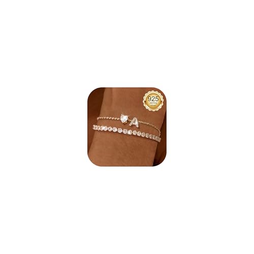 LOLIAS Armband dam guld – 925 sterlingsilver vristlänk tennis armband personligt med hjärta bokstäver hänge lager armband vristlänk sommar strand fot gåvor smycken, 21 cm