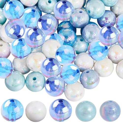 SOFPLATE 100 st 5 färger blå pärla 16 mm ocean pärlor bulk akryl ogenomskinlig rund sommar hav serie AB färgpläterad lös penna pärla för smyckestillverkning halsband armband nyckelring gör-det-själv